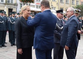 Uroczysty apel, który odbył się przy Fontannie Neptuna w Gdańsku, zgromadził liczne grono gości. W wydarzeniu uczestniczyli m.in. szef KAS Marcin Łoboda, wicewojewoda pomorski Emil Rojek, a także przedstawiciele służb mundurowych, administracji rządowej, samorządowej oraz instytucji współpracujących. Obok odznaki dla prezes Portu Gdańsk wręczono również Medale za Długoletnią Służbę i inne wyróżnienia honorowe dla funkcjonariuszy i pracowników KAS.